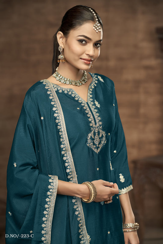 3 Piece Stylish Kurti, Bottom And Dupatta With Beautiful Embroidery Sequence Work