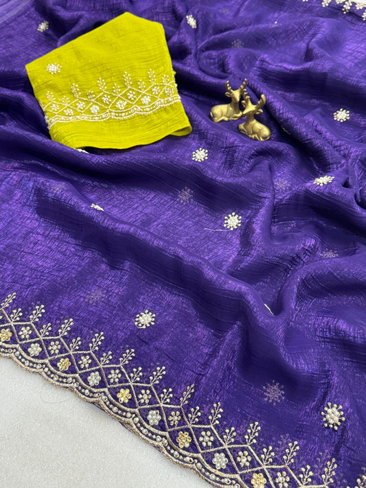 Chiffon Silk Saree with beautiful embroidery in blue color