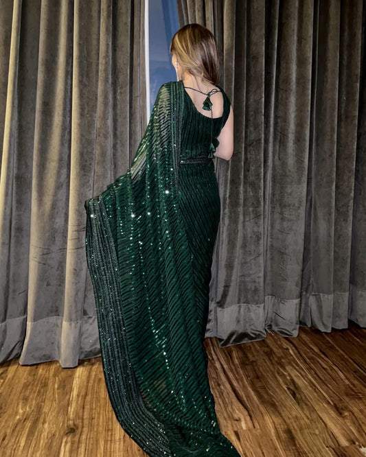 Green Color Beautiful Partywear Dress in Chinon Fabric