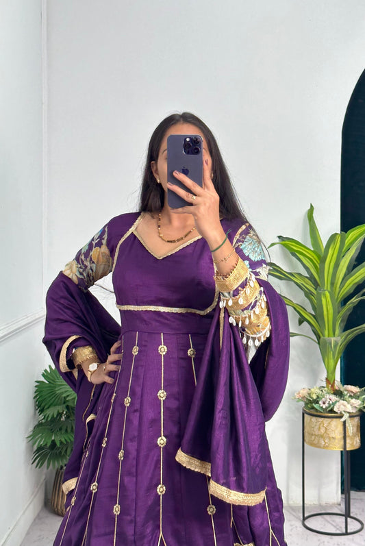 Purple Gown in vichitra Silk Fabric