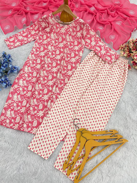 Rayon Kurti Pent Set For Daily Wear Use Gajari pink color