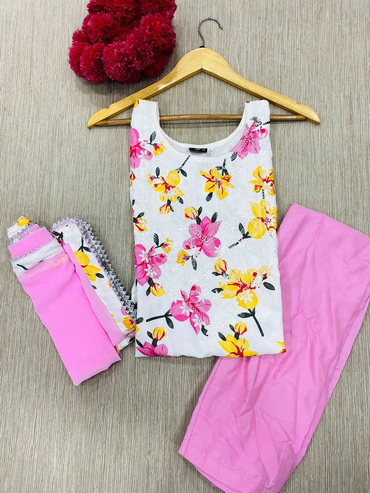 Rayon With Chikankari Embroidery Work Kurti Pent