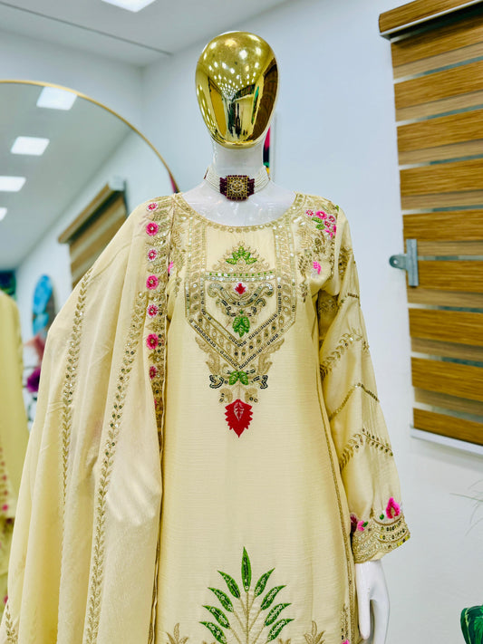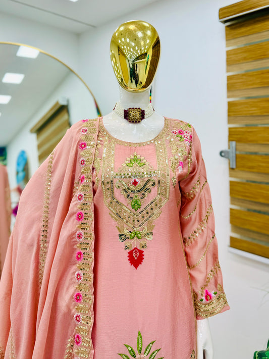 Simar Silk With Embroidery Work Top-Bottom And Dupatta Set Fully Stitched Ready To Wear