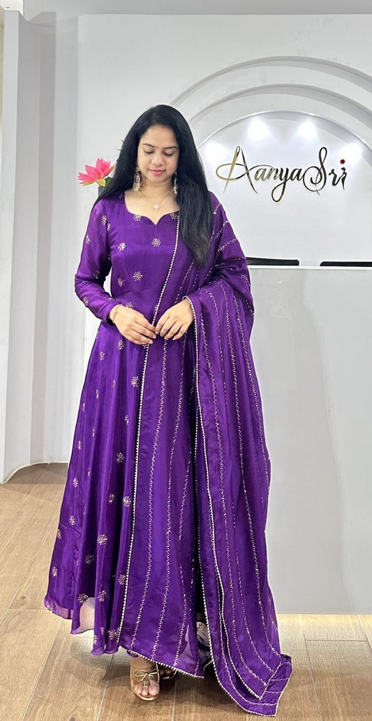 Beautiful Anarkali Gown in Chinon Fabric For Daily Wear Use in Purple Color