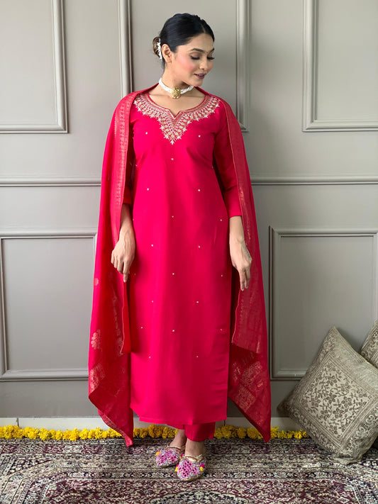 Kurti Duptta And Bottom Set in Red Color