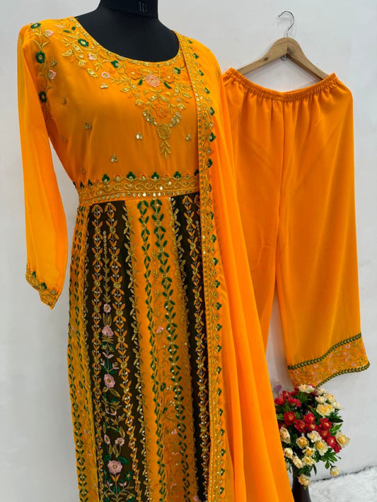 Yellow Musturd Color Anarakli Gown For wedding Haldi function
