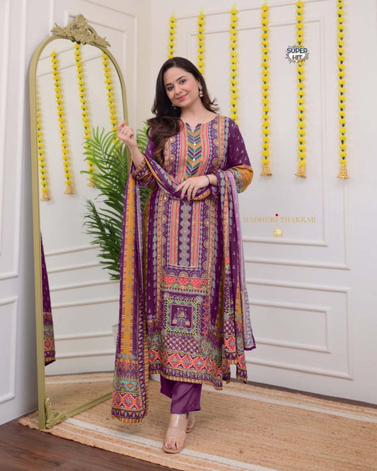 Purple Color Beautiful Chanderi Cotton Fabric Suit in big size