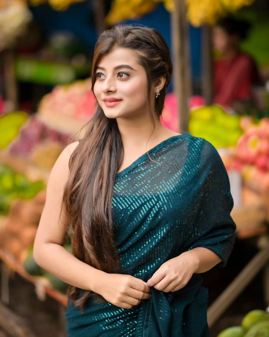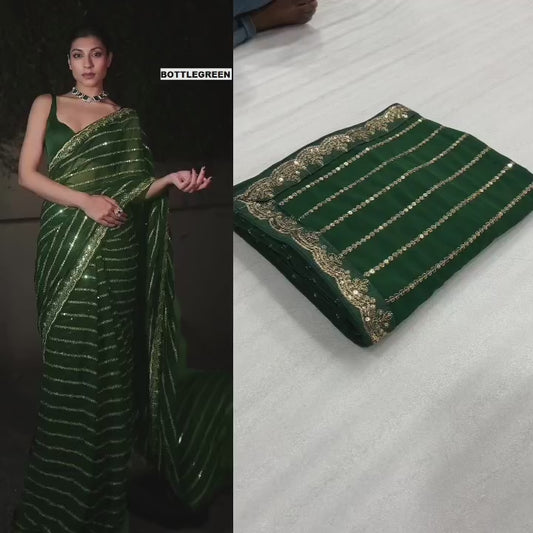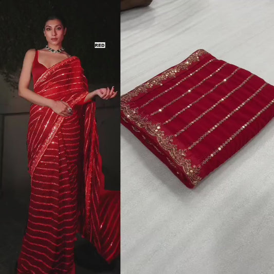 Yellow Color Beautful Partywear Sequence Saree in Georgette Fabric