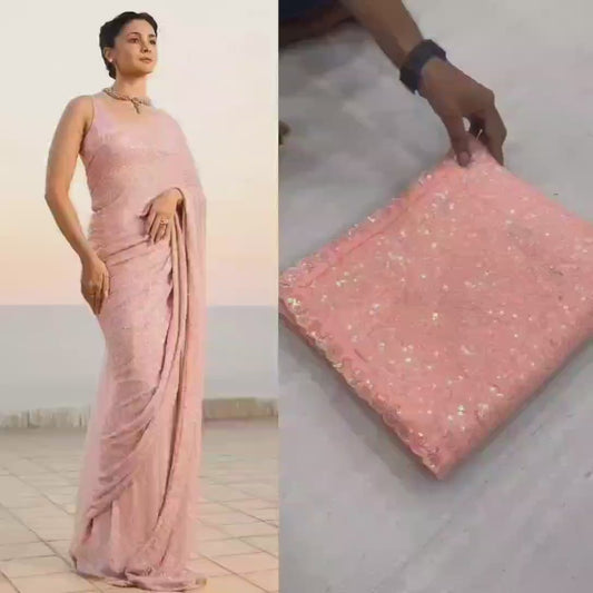 Pink Color Beautiful Bollywood Blockbuster Sequins Saree