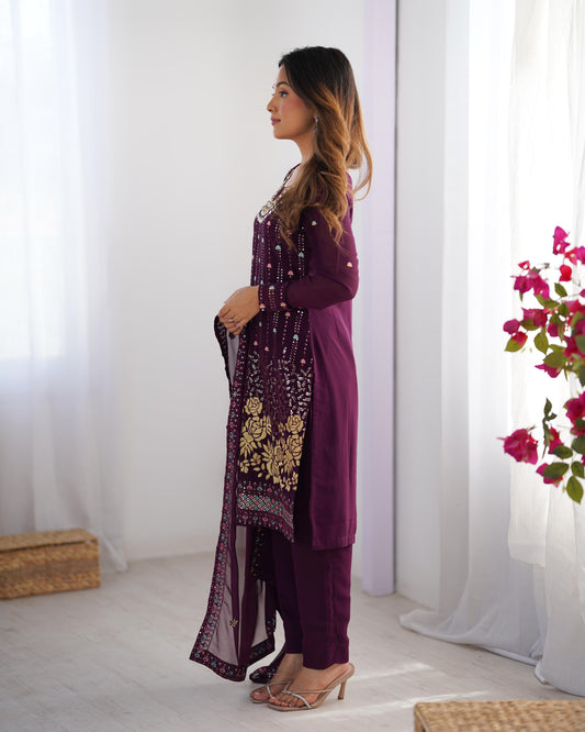 Zari-Thread & Sequins Embroidery gown Made For Desirable Women's Who Deserve It in purple color