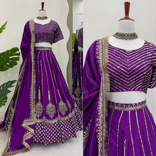 Purple Color Beautiful Partywear Lehenga Choli in Chinon Silk Fabric