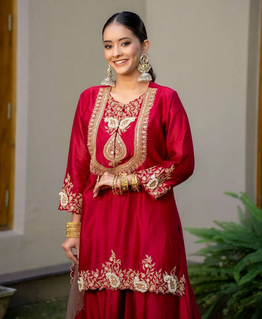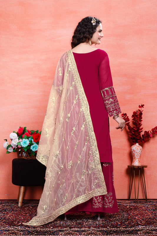 Designer Party Sharara Suit & Dupatta Set in pink red color