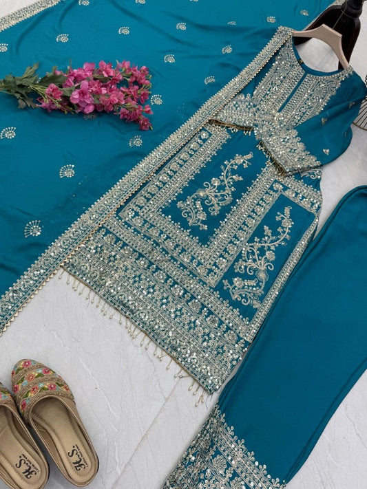 3 Piece Stylish Kurti, Bottom And Dupatta With Beautiful Embroidery Sequence Work
