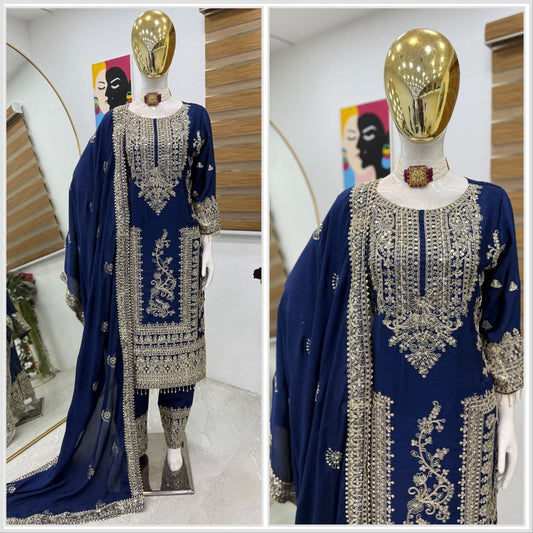 Party Wear Look Heavy Faux Georgette Top Plazzo & Dupatta Set