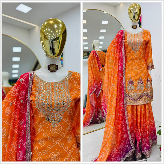Designer Party Sharara Suit & Dupatta Set in orange color