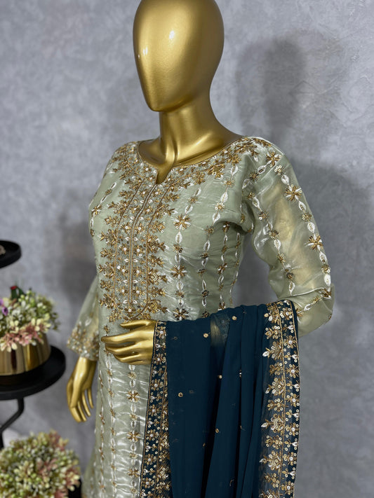 Party Wear Look Top-Plazzo And Dupatta With Heavy Embroidery Work