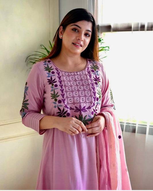 3 Piece Long Kurti With Bottom And Beautiful Dupatta in pink color