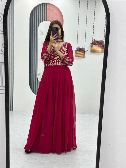 Maroon Color Beautiful Partywear Gown In Georgette Fabric