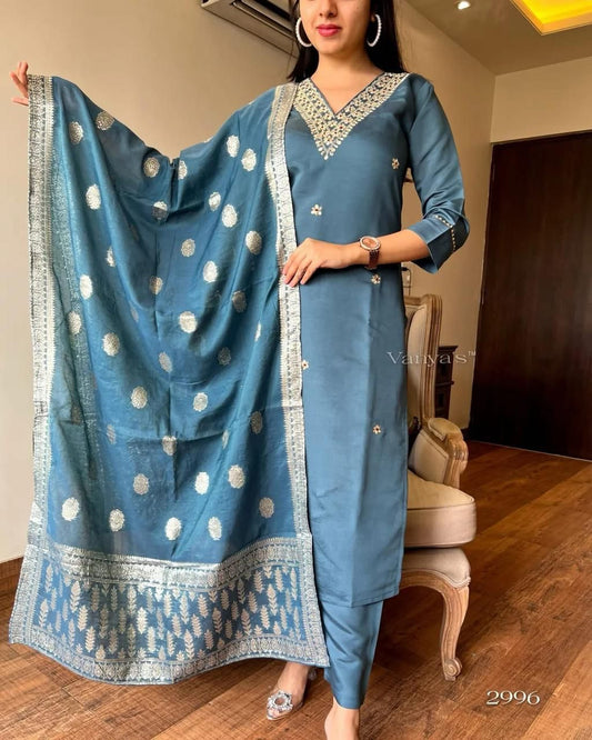Sky Blue Color Beautiful Summer Wear 3 pics Suit