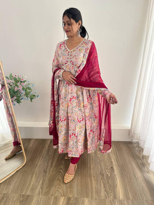 Designers Kurti Pent Dupatta Set For Summer Wear in purple color
