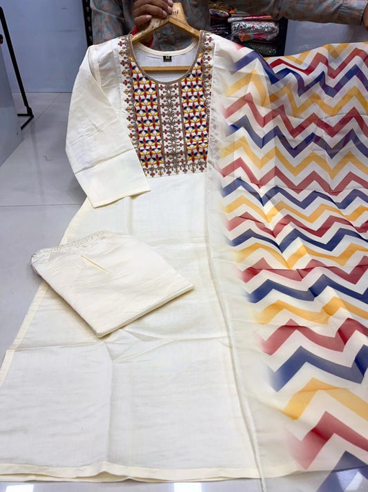 Designers Kurti Pent Dupatta Set for summer wear in light yellow color