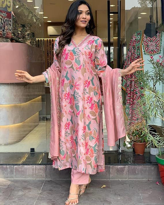 Designers Kurti Pent Dupatta Set for summer wear in Peach color