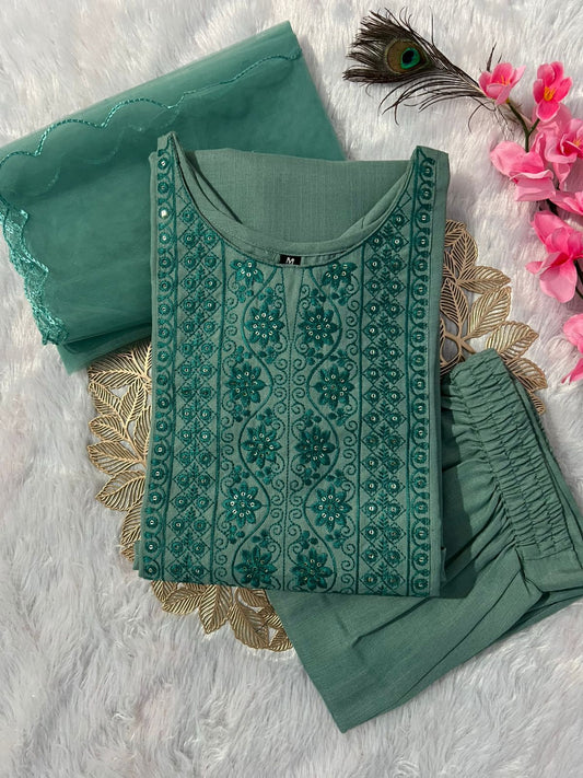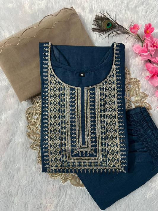 Blue Color Beautiful Summer Wear 3 pics Suit