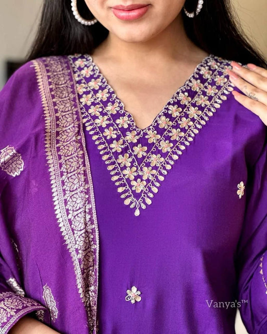 Purple Color Beautiful Summer Wear Dress in Roman Silk Fabric