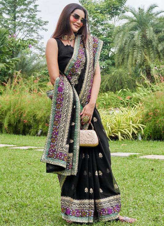 Black Color Beautiful Georgette Saree For Regulars Wear