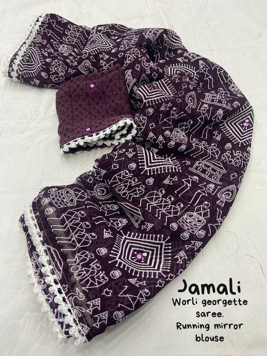 Purple Color Beautiful Georgette Saree For Regulars Wear
