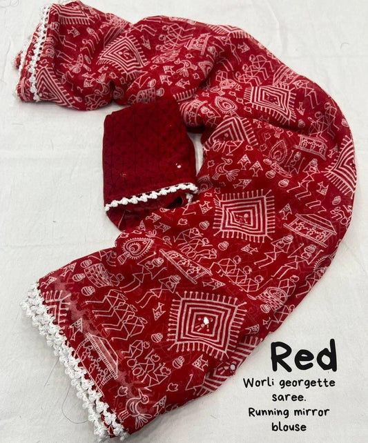 Red Color Beautiful Georgette Saree For Regulars Wear