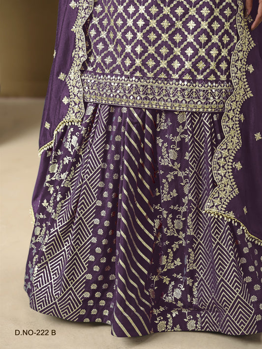 Purple Color Beautiful Partywear Top + lehenga Dress