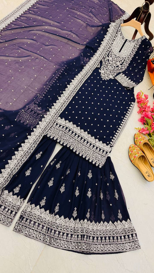 Dark Blue Color Beautiful Partywear Dress in Georgette Fabric
