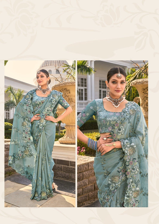 Sky BLue Color Beautiful Soft Tabby Organza Saree