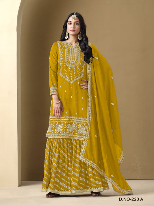 Yellow Color Heavy Sharara Wedding Wear Suit For haldi Function