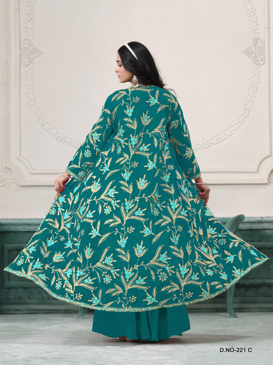 Dark Green Color Beautiful Sharara Suit in Georgette Fabric