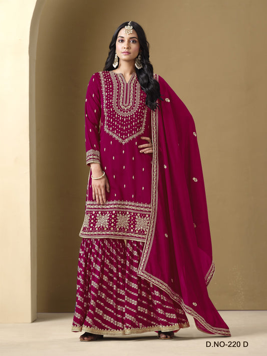 Rani Pink Color Heavy Sharara Wedding Wear Suit For Family Function