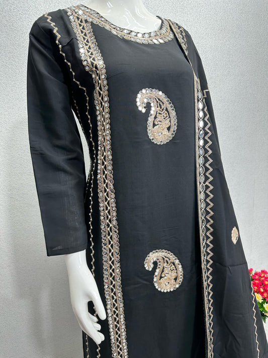 Black Color Partywear Heavy Suit In Roman Silk Fabric