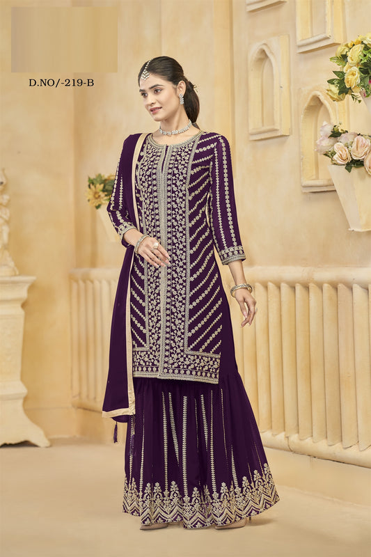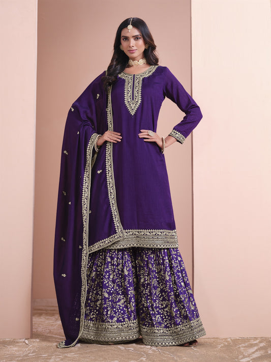 Purple Color Heavy Sharara Wedding Wear Suit For Family Function