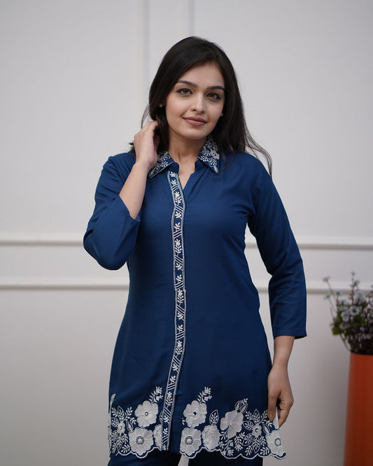 Beautiful Summer Wear Rayon Co-ord set in Blue color
