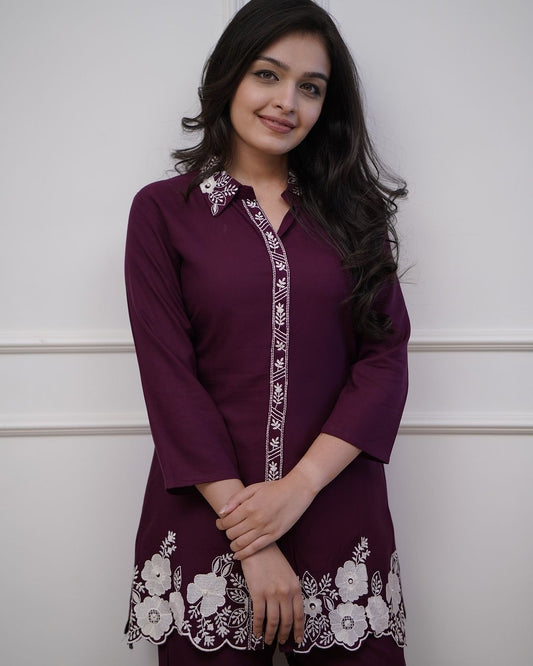 Beautiful Summer Wear Rayon Co-ord set in purple color