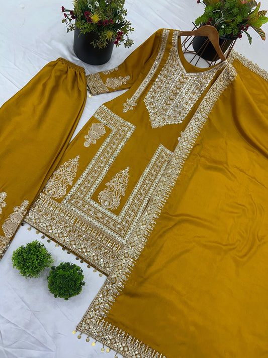 Yellow Color Beautiful Partywear Dress in Chinon Fabric