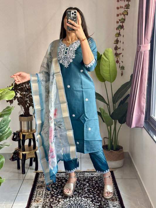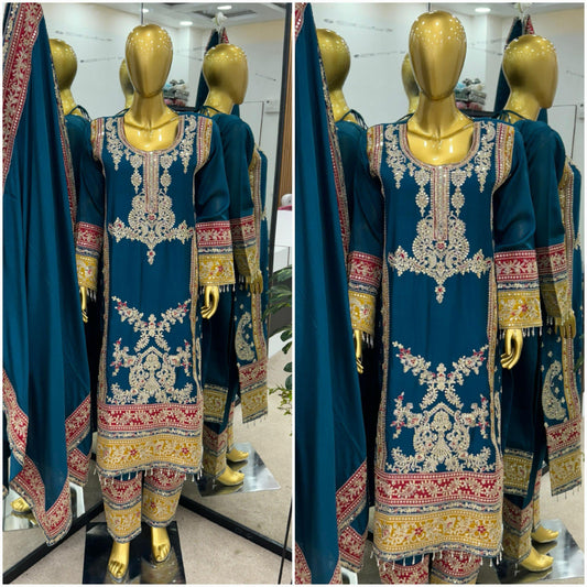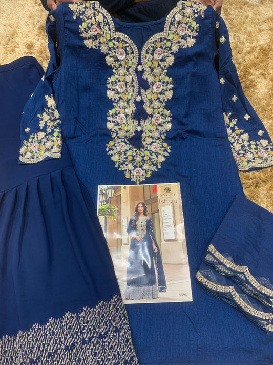 Blue Color Beautiful Partywear Dress in Chinon Fabric