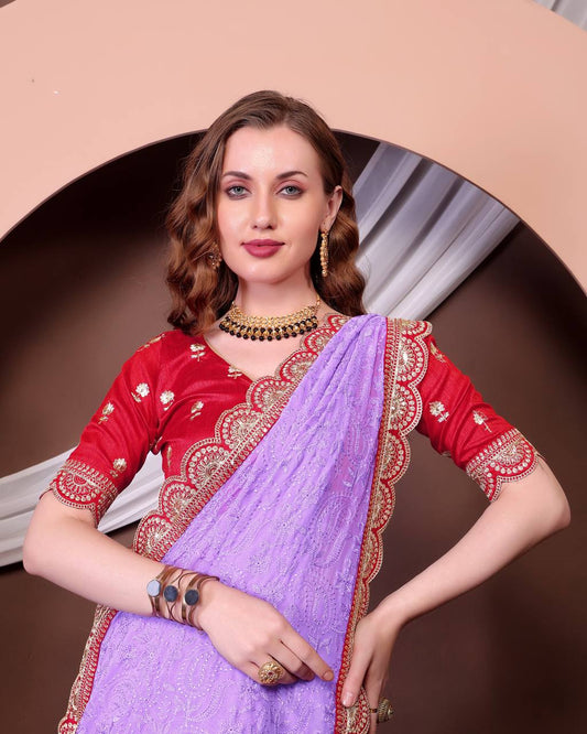 Purple Color Beautiful Partywear Dress In Chinon Fabric