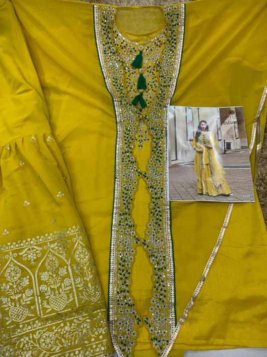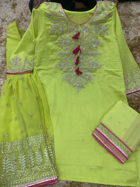 Light Yellow Color Beautiful Sharara Suit in Georgette Fabric