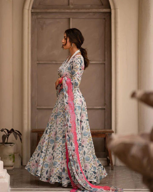 Blue Color Beautiful Anarkali Gown In georgette Fabric
