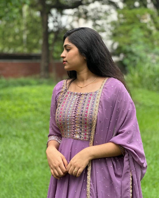 Purple Color Beautiful Chinon Silk Fabric Dress