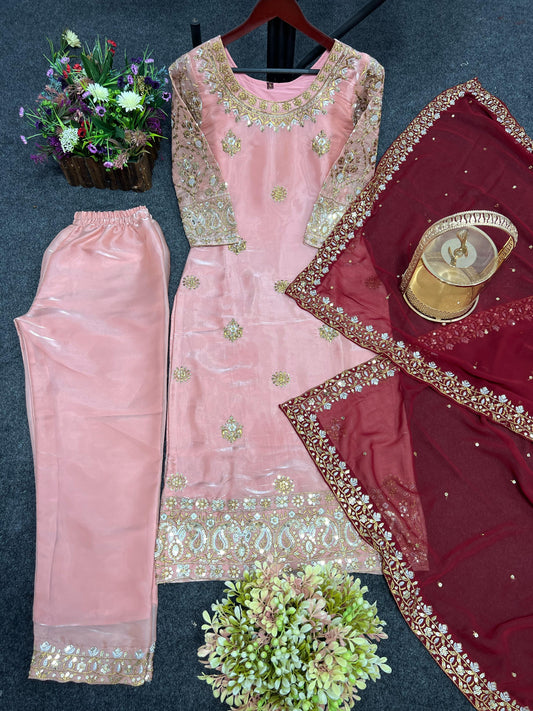 Pink Color Beautiful Plazo Suit For your festival and wedding wear