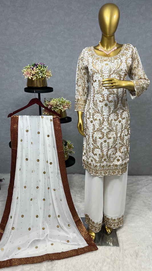White Color Beautiful Partywear Suit In Georgette Fabric