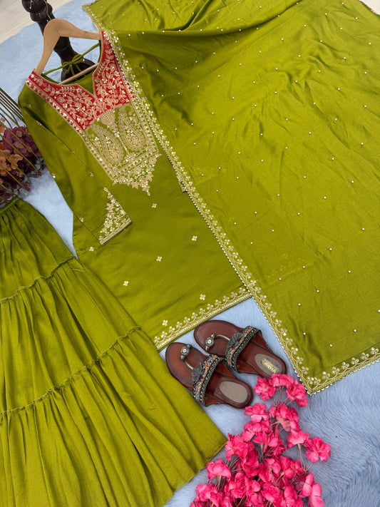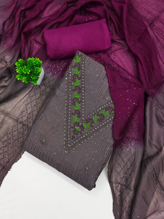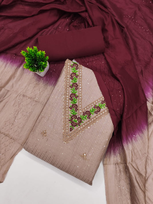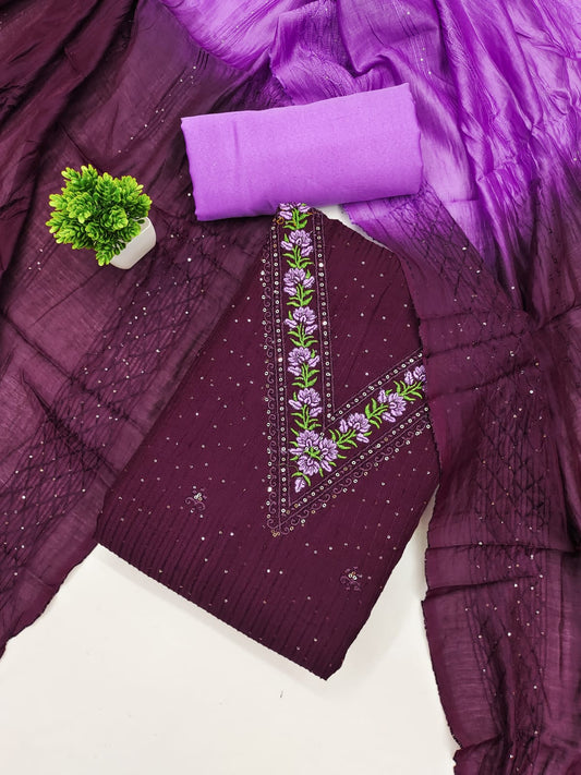 Organza Silk Suit With Multi Sequence Work For Small Family Function